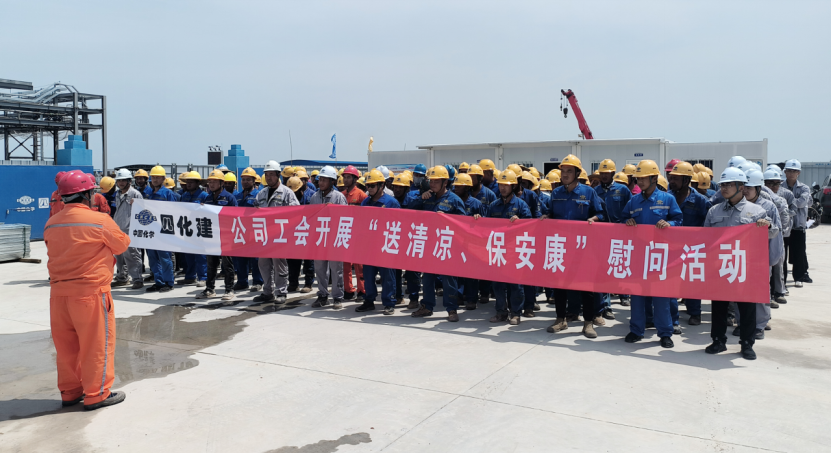 8月2日,受公司工會委托,公司安全生產(chǎn)管理部與華北公司在廣西桐昆項目開展“工會送清涼,防暑保安康”慰問活動,為一線職工送去涼茶、鹽汽水、清涼日用品等防暑降溫禮包。慰問組深入各施工班組,與職工親切交談,詳細了解他們的作息時間和防暑措施,宣傳高溫作業(yè)及中暑應(yīng)急預(yù)案等相關(guān)知識,叮囑大家在堅守崗位的同時務(wù)必注意勞逸結(jié)合,確保安全健康作業(yè)。