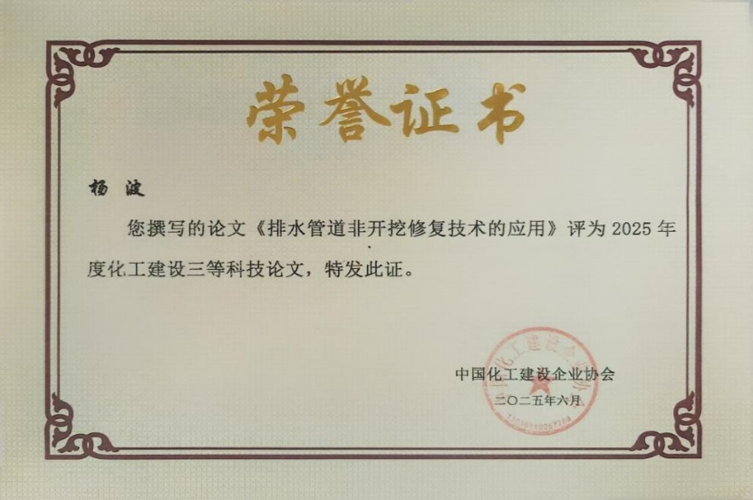 《排水管道非開挖修復技術的應用》論文源自中南公司質量負責人楊波對城市地下管網(wǎng)維護技術的深度探索。該研究聚焦城市地下老舊管道修復的實際需求,創(chuàng)新提出“微創(chuàng)”修復方案,相較傳統(tǒng)“開膛破肚”式施工,具備施工周期短、對周邊環(huán)境及建筑影響小、綜合成本低的突出優(yōu)勢。應用該技術后,整體修復效率提升40%,地面破壞面積減少90%,既能大幅提高市政管網(wǎng)施工精度與效率,又能有效降低傳統(tǒng)破拆修復模式對城市交通秩序和居民日常生活的干擾,為城市地下管網(wǎng)更新改造提供了綠色高效的技術路徑。